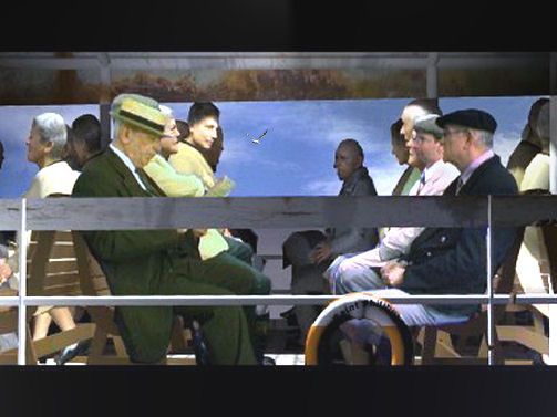 3 - Les figurants (sur un fond transparent) seront incrustés dans le décor du bateau avec les personnages 3.D